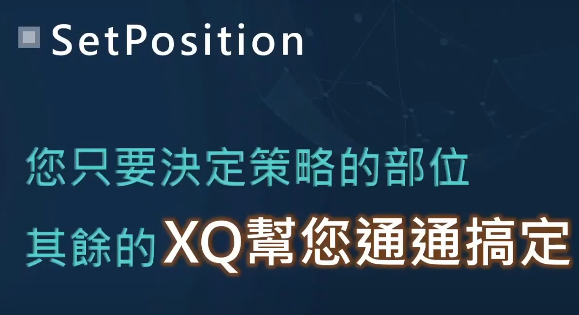XQ 的自動交易功能整合簡單語法與交易帳戶實際庫存,讓策略執行更加靈活且高效。透過簡單的指令語法「SetPosition」,投資者即可快速設定目標部位(如追價、刪單、清倉等)與交易委託價格,大幅簡化繁瑣的交易操作。此外,完整的交易監控介面即時顯示部位異動、委託成交狀況,並提供策略執行紀錄,讓每一步操作都清晰可查。想了解 XQ 的程式自動下單相關功能,可以參考以下相關文章: 2.3. XQ 電腦版 - 看盤報價