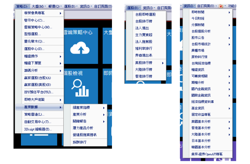 ▼XQ 電腦版 - 資訊統整:產業/新聞/盤後分析資料的相關選單路徑
