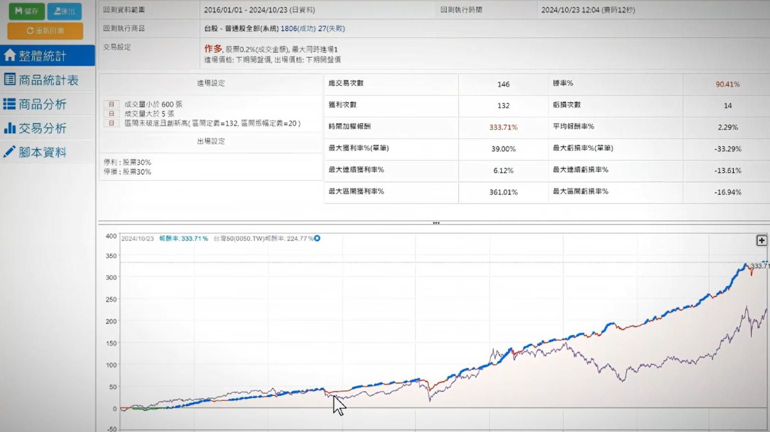 XQ的歷史回測功能讓投資者輕鬆驗證策略績效,透過歷史資料執行條件選股與策略腳本,模擬真實交易情境,並支援多檔商品同時回測,快速設定進出場策略。此外,XQ還提供直觀的報表分析,報酬率一目了然,幫助投資者反覆檢視與優化交易策略,為未來操作做好充分準備。想了解 XQ 的歷史回測相關功能,可以參考以下相關文章: 2.2.4. 模擬交易