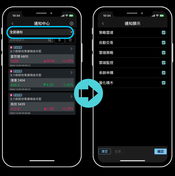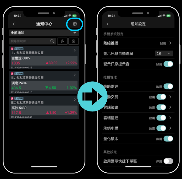 通知中心為用戶提供即時的市場動態通知,幫助您在繁忙的日常中不錯過任何投資機會。透過自動推播功能,您無需頻繁檢查市場行情,也能在關鍵時刻第一時間獲取重要資訊,快速應對市場變化。此外,通知中心的靈活訂閱與管理功能,讓您能根據自身投資策略精準設定通知條件,大幅提升交易效率與決策準確性,是每位投資者在多變市場中保持競爭力的得力助手。2. 如何查看與設定通知中心?