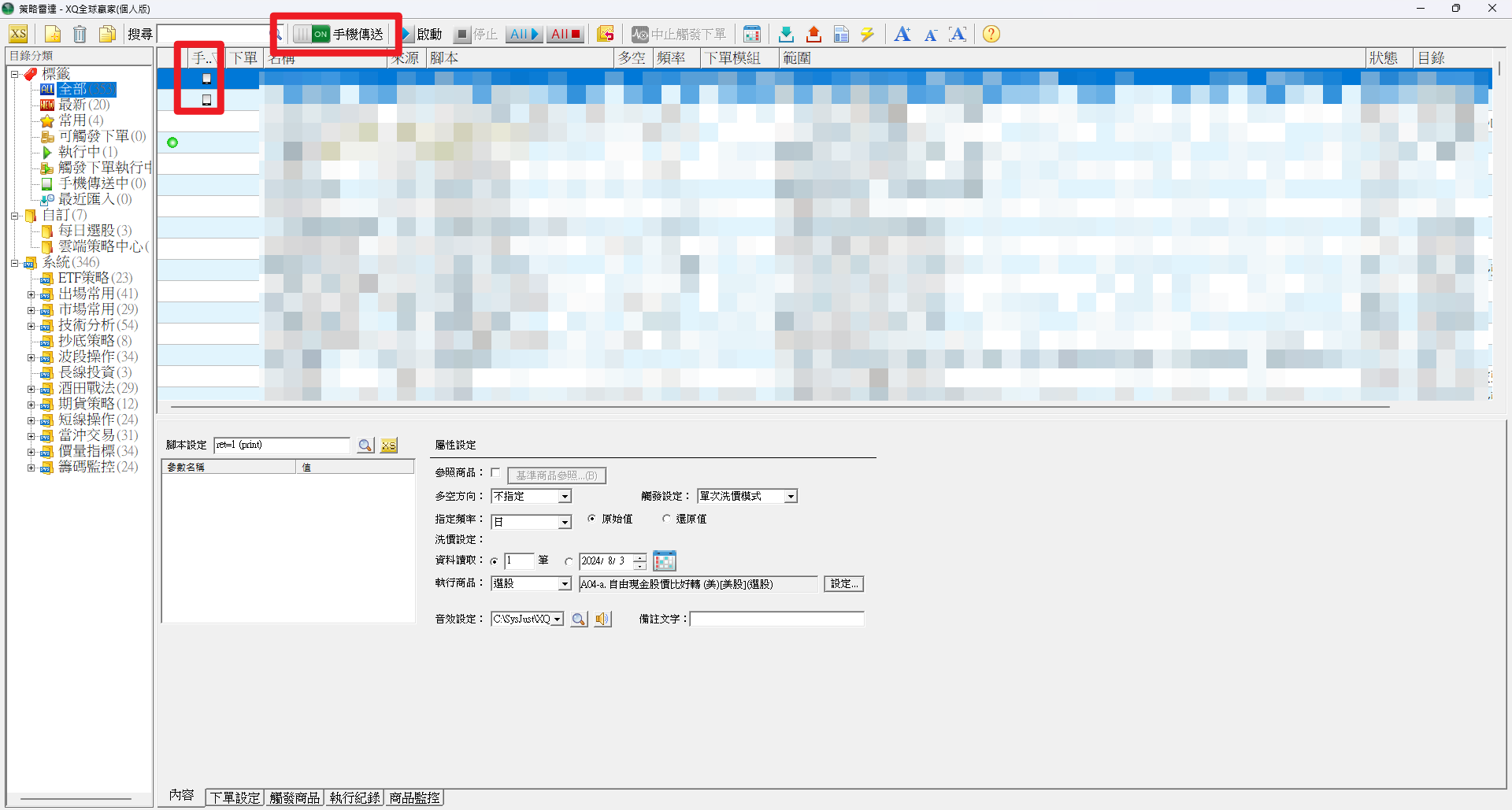 策略雷達的部份可以在啟動之後把「手機傳送」打開來,如果在你的策略上面有個手機的圖示的話就代表支持手機傳送了。▼策略雷達設定方法
