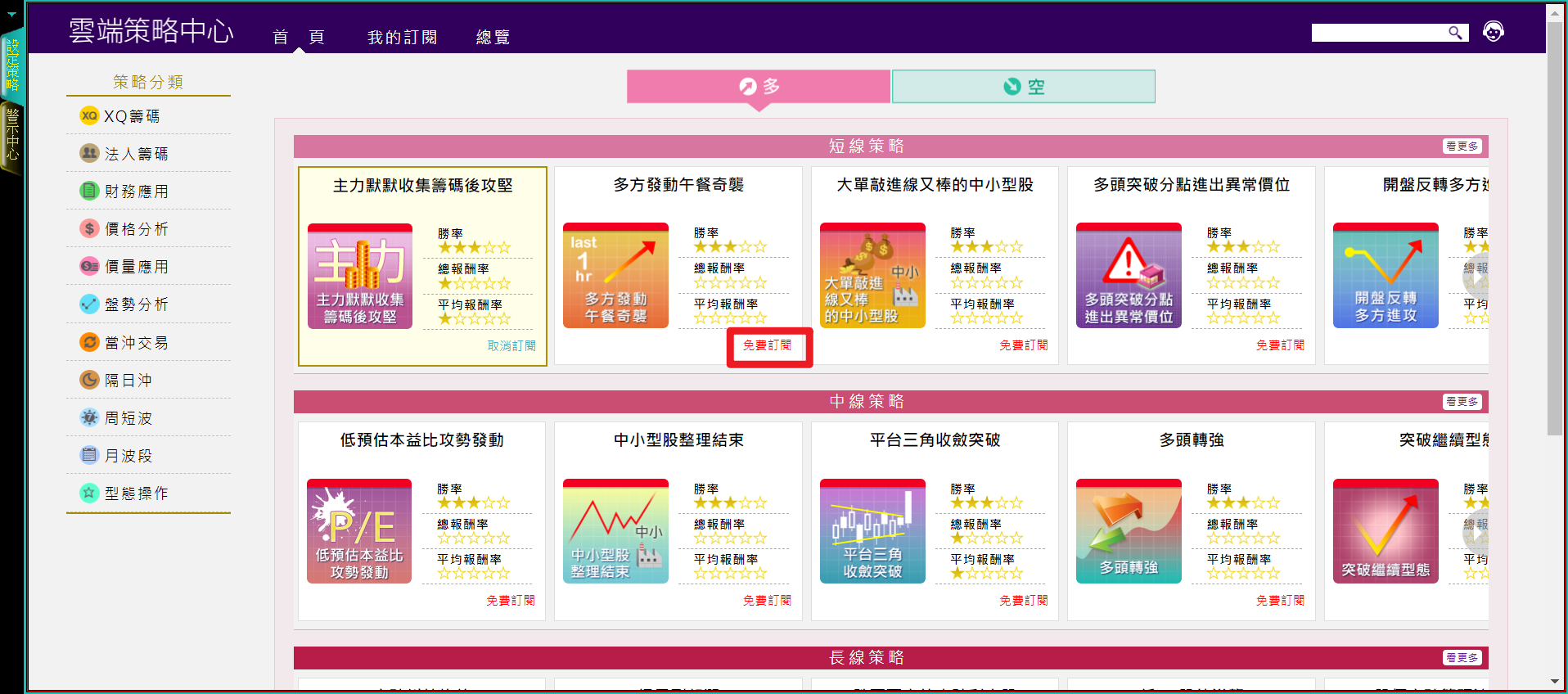 雲端策略的部份,會將您訂閱的策略直接推送給您。▼雲端策略介面