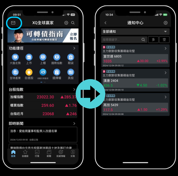 透過XQ全球贏家APP的通知中心功能,您可輕鬆掌握市場動態,做出明智的投資決策。我是 XQ 小編,我們下次見。