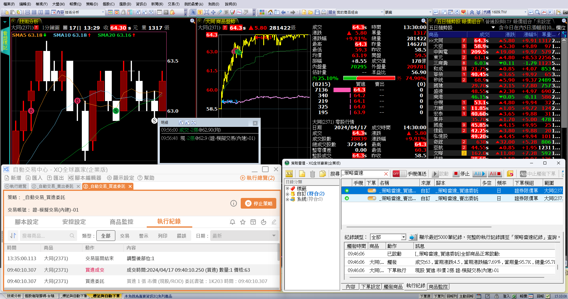 3. 執行「XS自動交易與XS策略雷達」開啟下單的策略。