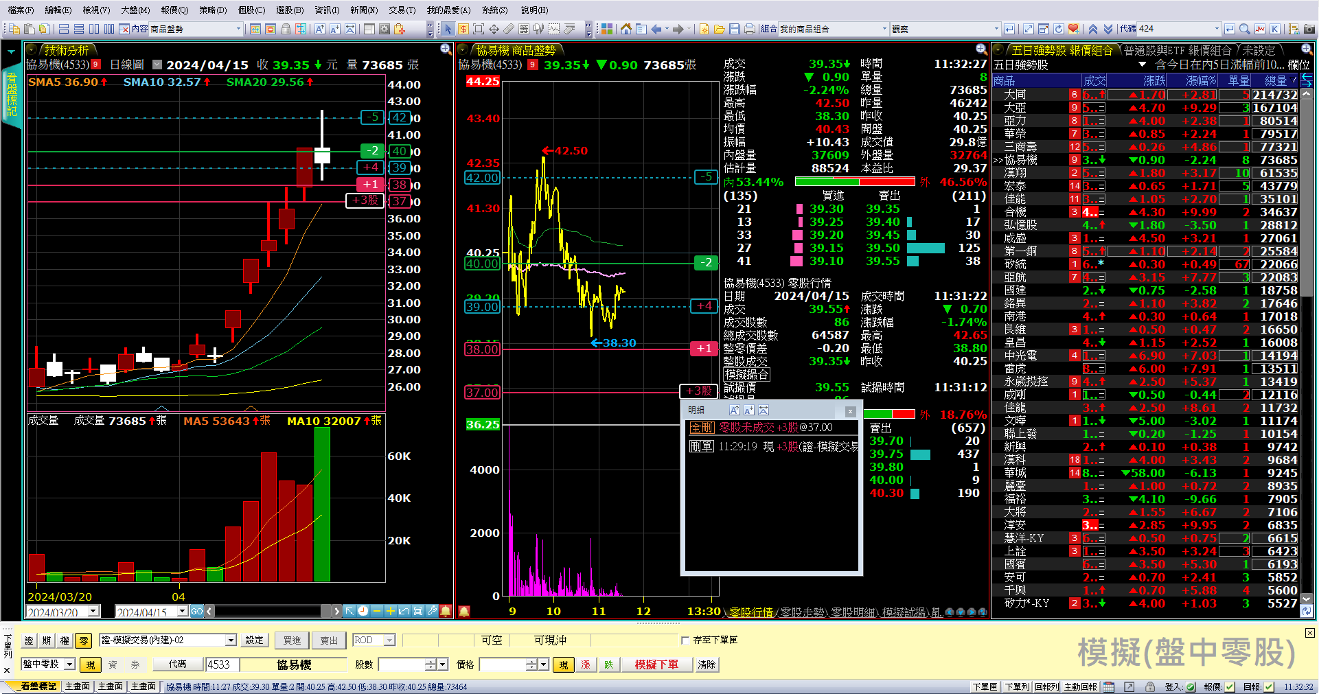 3. 手動送出限價與MIT單的委託單,會顯示交易訊號標記,如下圖委託送單協易機(4533.TW)商品。
