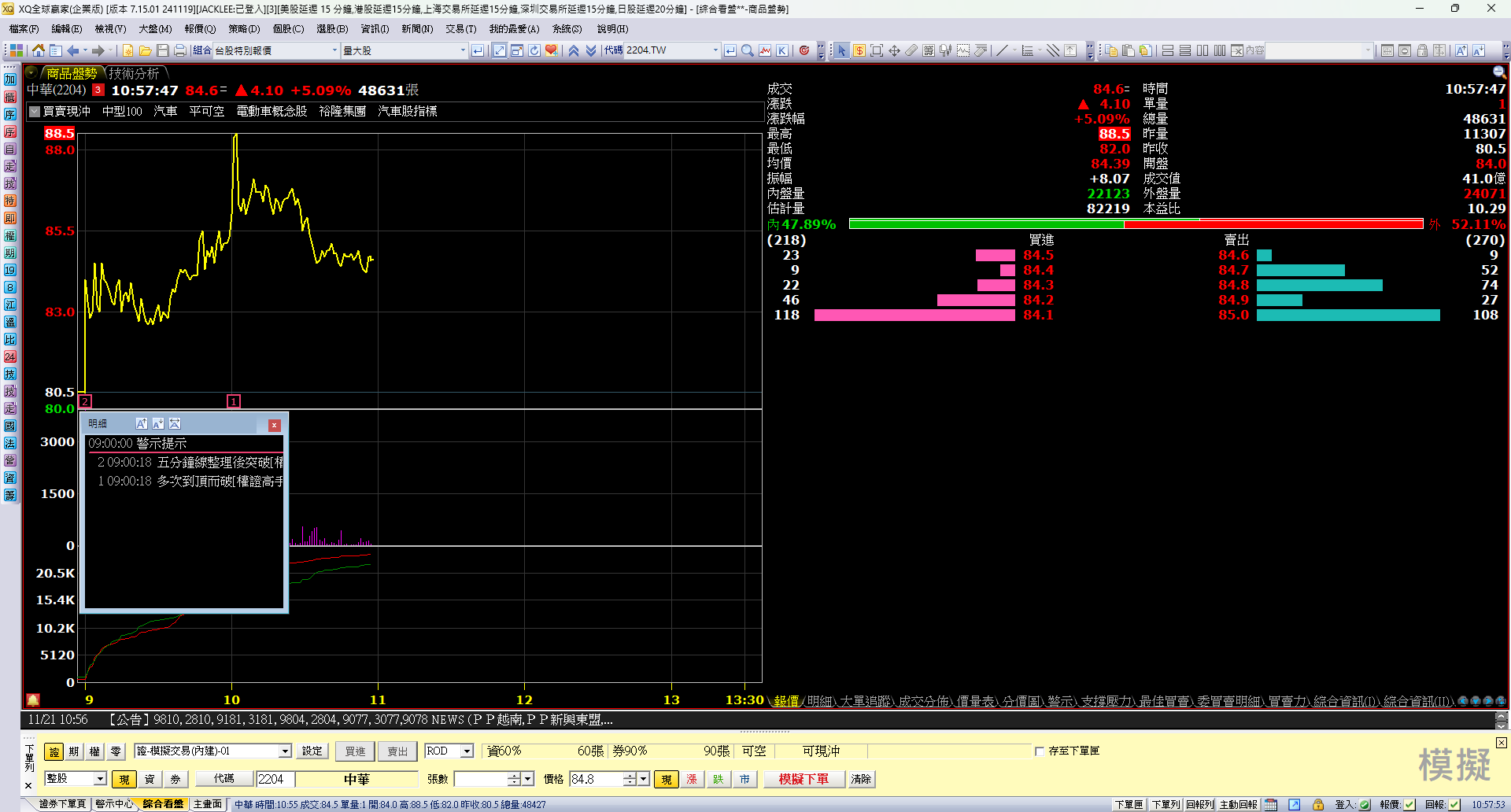在快速變化的金融市場中,交易的即時性與可視化管理是成功的關鍵。為了提升用戶的交易效率與操作體驗,XQ 推出了交易與警示訊號標記功能,讓用戶可以在商品盤勢與技術分析頁面即時查看未成交委託、成交明細及MIT單的交易訊號標記,並支援多帳號整合與異常警示。無論是手動下單還是自動交易,這項功能都能幫助投資者快速掌握交易動態,實現更精確、更高效的操作流程。1. 在「商品盤勢」與「技術分析」中顯示警示有什麼好處呢?