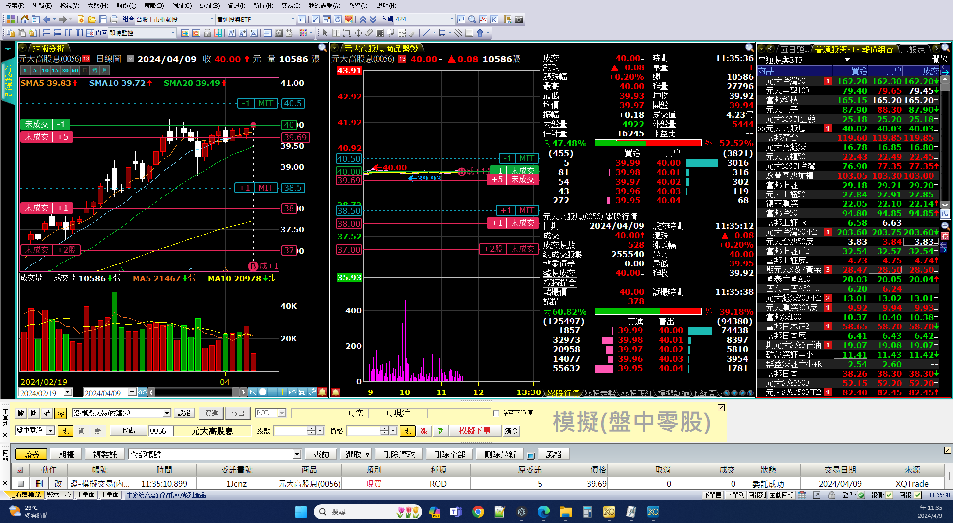 - 10:05:56 模擬交易帳號-01 限價單 現股買進 1 張。