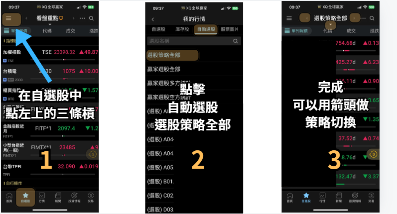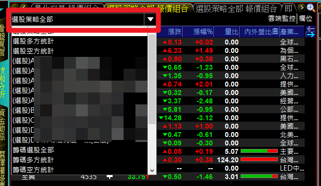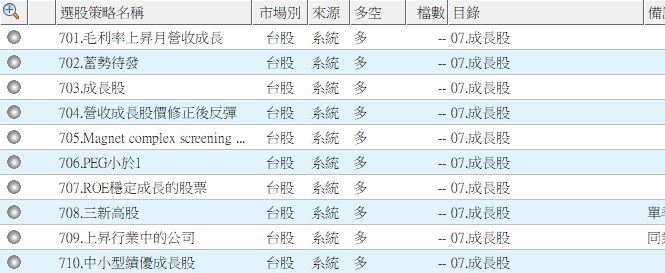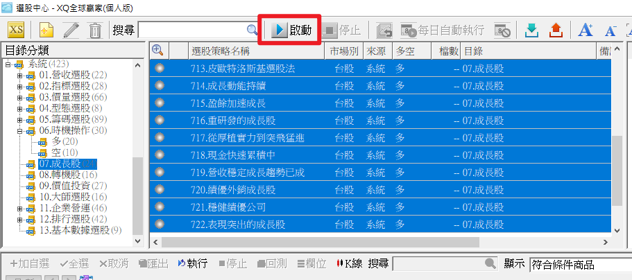 - 這樣就完成了,也可以在這個介面用箭頭 (左、右、下) 進行選股策略之間的切換。
