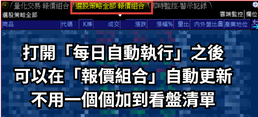 - 自動將選股結果加到報價組合,無需手動打開選股中心一個一個點。