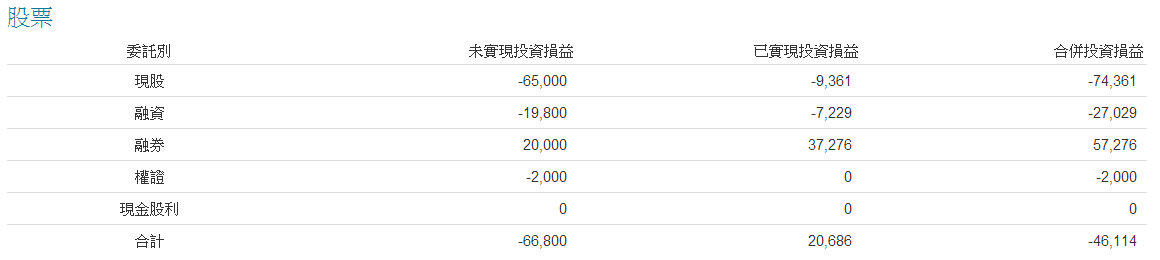 未實現投資損益:未實現損益頁面 – 預估損益金額加總 已實現投資損益:已實現損益頁面 – 損益金額加總 合併投資損益:未實現投資損益 + 已實現投資損益