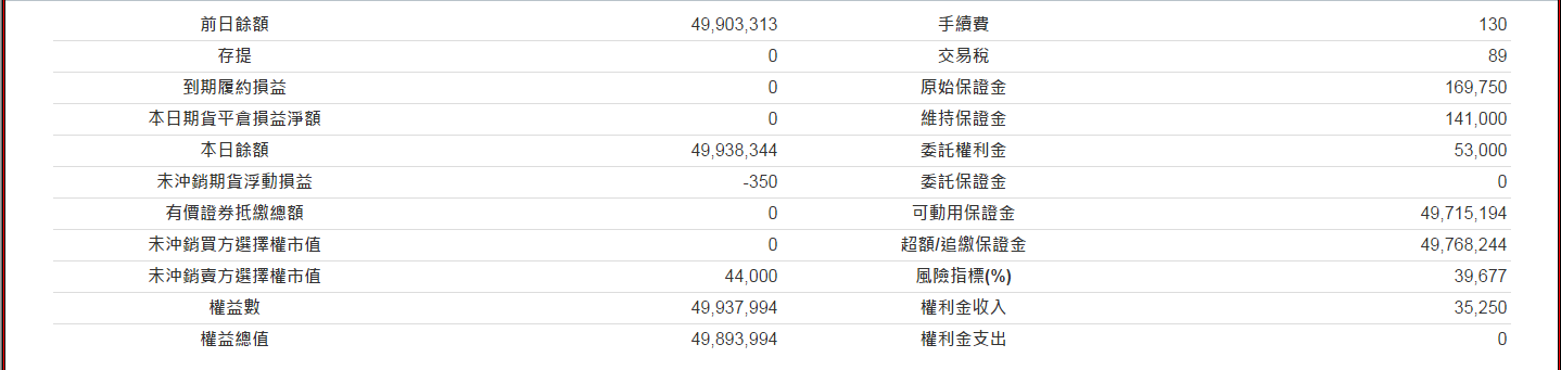 - 保證金追繳:結帳時若不足,則依照結算價強制平倉。