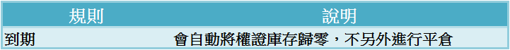 到期:會自動將權證庫存歸零,不另外進行平倉。