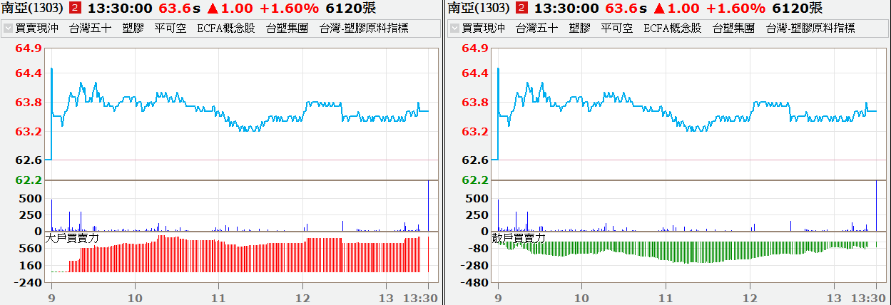 • 散戶買賣力指標:開盤至今散戶單的內外盤金額差數字,研究散戶單偏多或偏空。