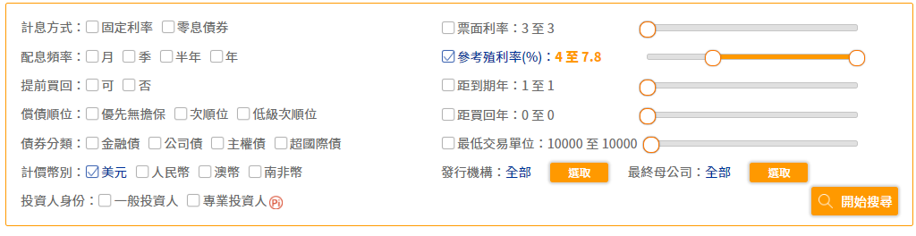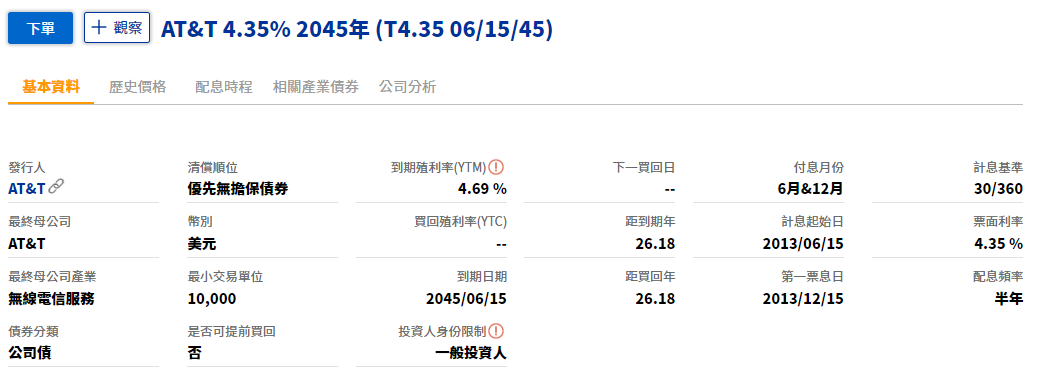 1. 是賺利息,投資債券可以給投資者定期帶來利息收入,通常會比銀行定存高。 2. 是投資者可以利用債券價格的變動,買低賣高賺價差。 在美國債券專區,精選百檔全球知名企業公司債,提供債券基本資料、價格走勢圖、配息時程、發行公司分析、也提供近期債券行情表、熱門債券表、投資人也可依照偏好做進階搜尋。 功能畫面參考: