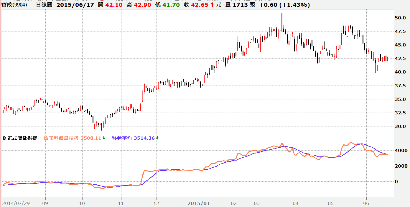 2016061701在推廣XS的過程中,我有一些年紀大的,不大有學習動機跟能力的朋友,會直接嗆我說:「你說的這些我都聽攏謀,霧煞煞。你直接給我一個指標,看漲看跌清清楚楚的,我學不了那麼多。」 每次碰到這種,我都很想請他自己去買把槍,買個口罩及安全帽。 在我使用XS的過程中,我確實是設計過很多的指標,若要說有考慮到價跟量,又能指出多空趨勢,又要能夠濾掉那些因為一時衝動所造成的假訊號的,倒是有個指標。 這個指標我稱之為「修下式價量指標」。 這個指標的概念很簡單: 1. 先算出每天的Midprice。也就是每天的開高低收四個值的平均值。 2. 然後把這個值乘以每天價格的漲跌幅,再乘上當天的成交量。 3. 然後一路累加這個數值。 這樣計算出來的指標,在盤整時整條線會很貼近水平線,只有在漲跌趨勢很明確時才會上漲或是下跌,所以如果拿它跟它自身的一定週期移動平均線來對照,我們可以看到非常明確的進出場訊號。 我把上述的概念及算法用XS語法寫的指標如下: 移動平均線的天期就勞煩各位自己調整了。