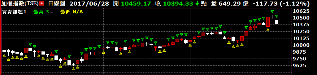 看完了置頂、置底的介紹,再來介紹的是最高跟最低。 最高跟最低主要是圖型會在K棒的上下方做圖型繪製。最高最低1看完了2個指標的設定,這邊也一樣接著介紹多指標的呈現 最高最低2在多個指標的設定下,如果同時有訊號觸發,較不一樣的規則,是以plot的順序往下用疊放的方式做呈現。   相信以後在繪製進出場訊號時,會有更多的使用方式。
