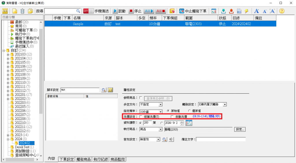XQ 新增了自動洗價的功能,讓使用者可以不需根據執行商品是否有洗價強制讓策略運算,達到在執行商品沒有發生交易的狀況下也能夠判斷是否要警示或是進出場。 有了這項功能後,即使是在盤前的階段也能夠讓策略運作並下出委託,但需注意只有在交易所開始收單後策略雷達和自動交易中心才能夠下單。