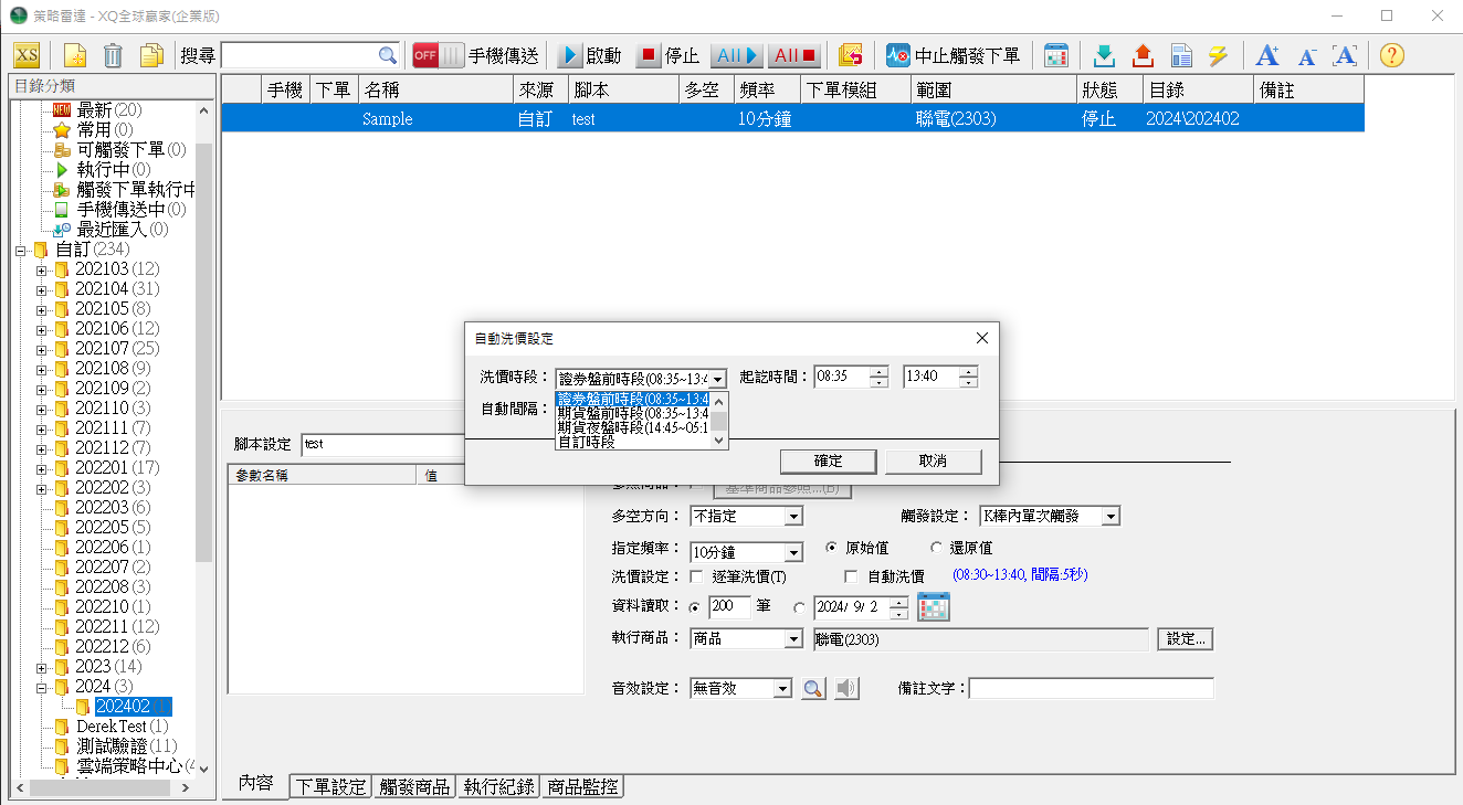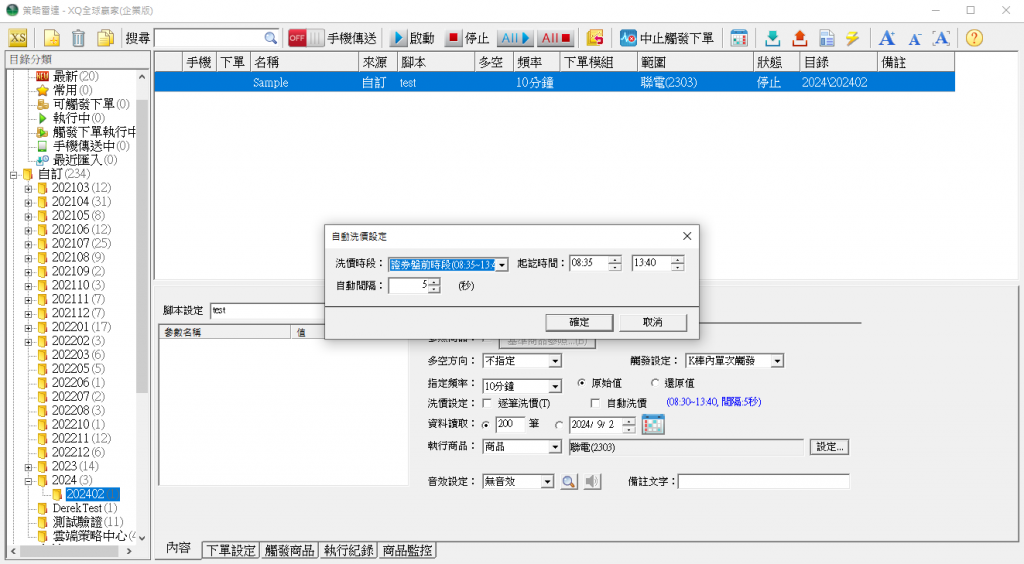 • 自動洗價功能可以自訂洗價區間,目前系統並沒有限制自訂區間的起始和結束時間。但伺服器會判斷執行商品是否已經收盤,已經收盤的商品是不會執行自動洗價的。