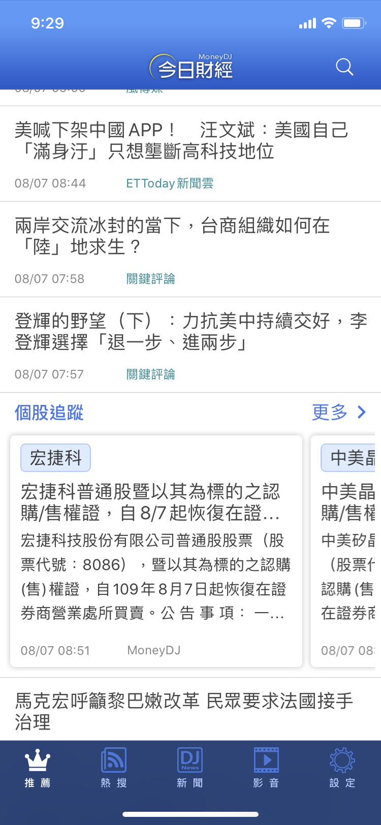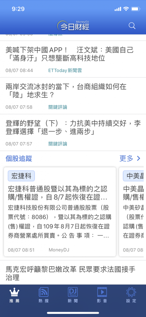 成功訂閱後,再次進入首頁,「為您推薦」的「個股追蹤」畫面就會出現了