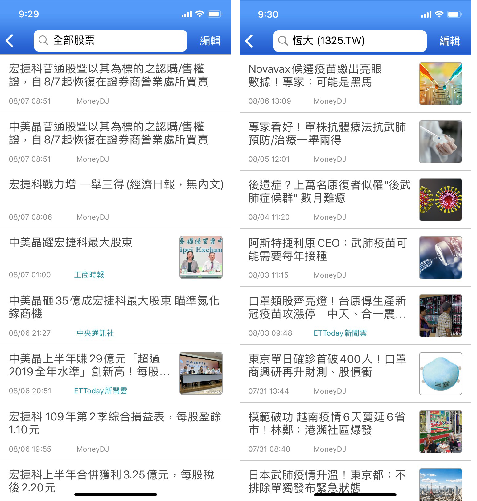 有投資股票的人,就會知道,當自選股名單越加越多時,每天要追蹤的個股新聞,就會越來越多,且要從各媒體平台,把個股的新聞全部看完一遍更是花時間。有鑑於此,結合國內一流財經媒體的今日財經APP,推出「個股新聞訂閱」功能,一個平台,一個點擊,就可以看完您所有關心的股票的新聞。