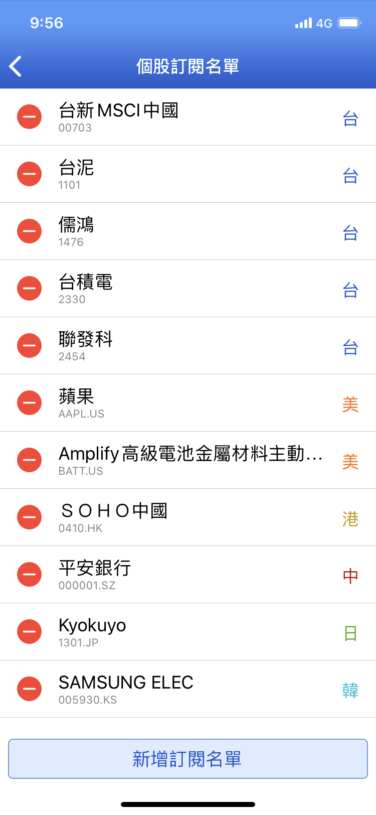 可以新增台、美、港、中、日、韓等六個市場的股票