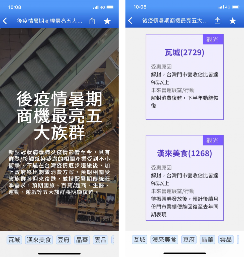 七月時,我們推出了「後疫情暑期商機最亮五大族群」專題,整理出解封+振興券,影響觀光、百貨超商、戶外運動、生醫、遊戲等五大族群的投資商機,大家可以參考。