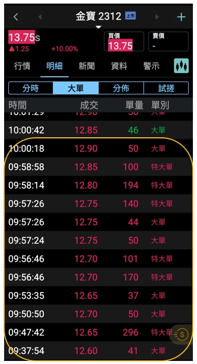 所以要提升勝率,以上三點那是缺一不可 ~ 如果你又剛好只能用手機在玩當沖,在資訊相對有限的情況下要同時解決上面三個問題還真的不容易,不過現在…   全新的成交明細就能一定程度解決這些問題囉?
