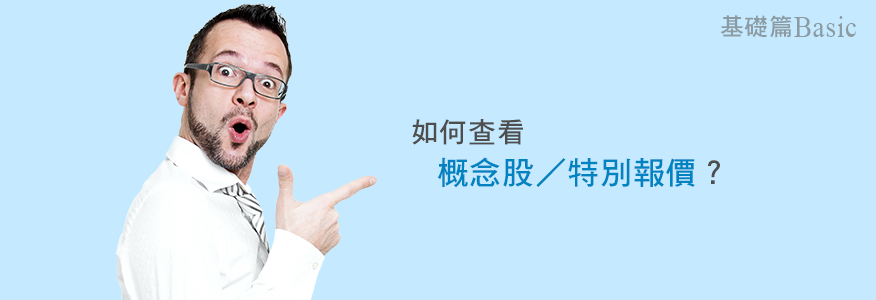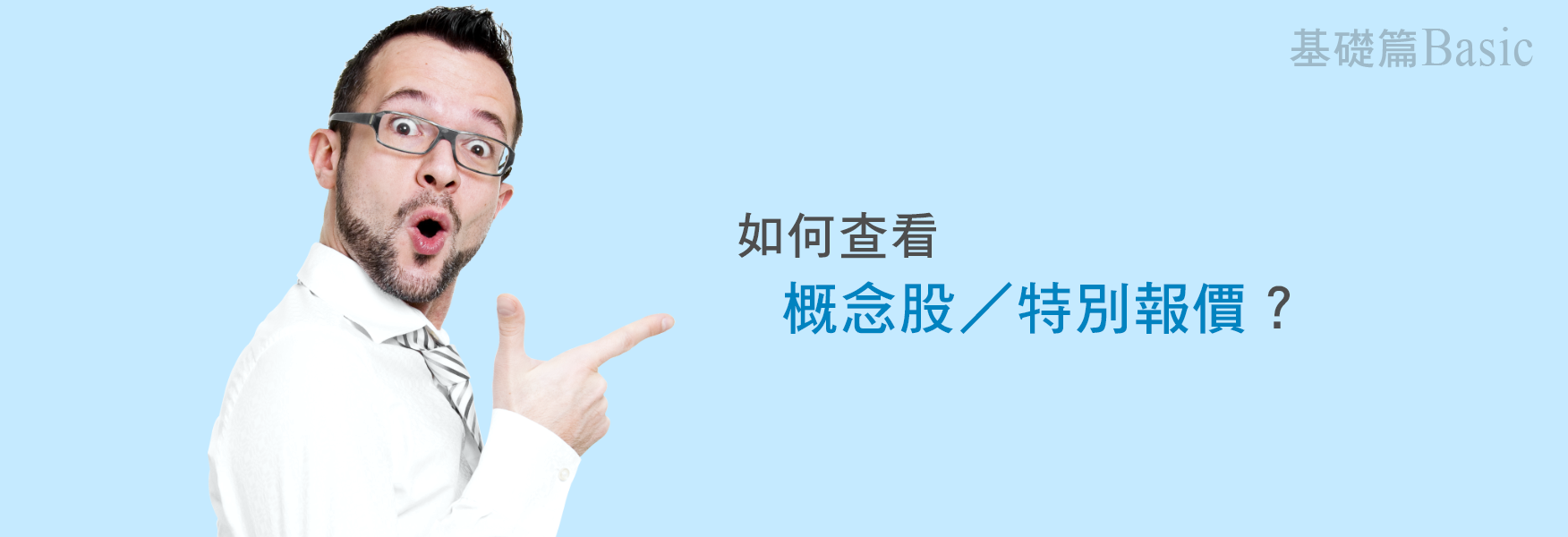 提供時下最熱門的概念股資訊,將具有題材、話題性及時效性的股票列為選股標的組合,例如耶誕概念股、光棍節(雙11)受惠概念股、Apple概念股..等,在新概念股成形,會跳出視窗告知有何最新概念股,並隨時更新題材,提供做好最專業的概念股整理,讓您能夠快速掌握市場的最新動態。 1.進入方式:點選主功能列「報價→台股精選報價→概念股報價」。 2.操作方式: (1) 直接點選各概念股名稱,例如「電玩展概念股」、「光棍節(雙11)受惠概念股」..等。
