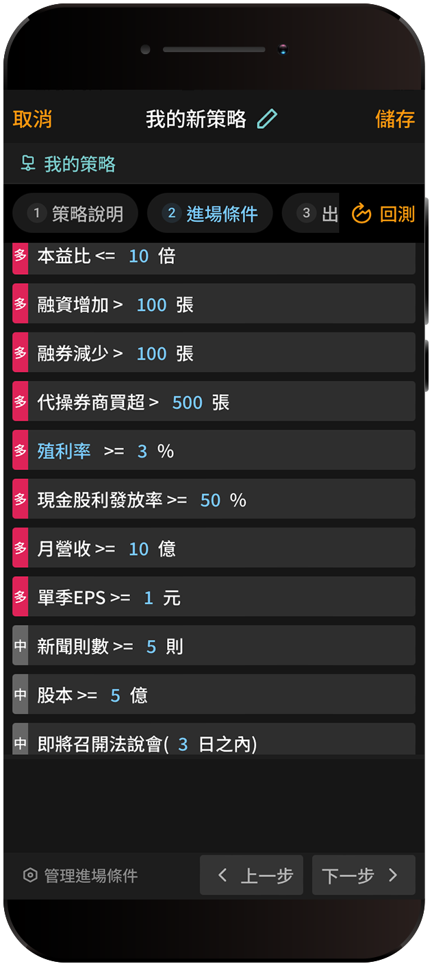 選股策略可回測及模擬報酬,提高投資效率。(進階付費功能)