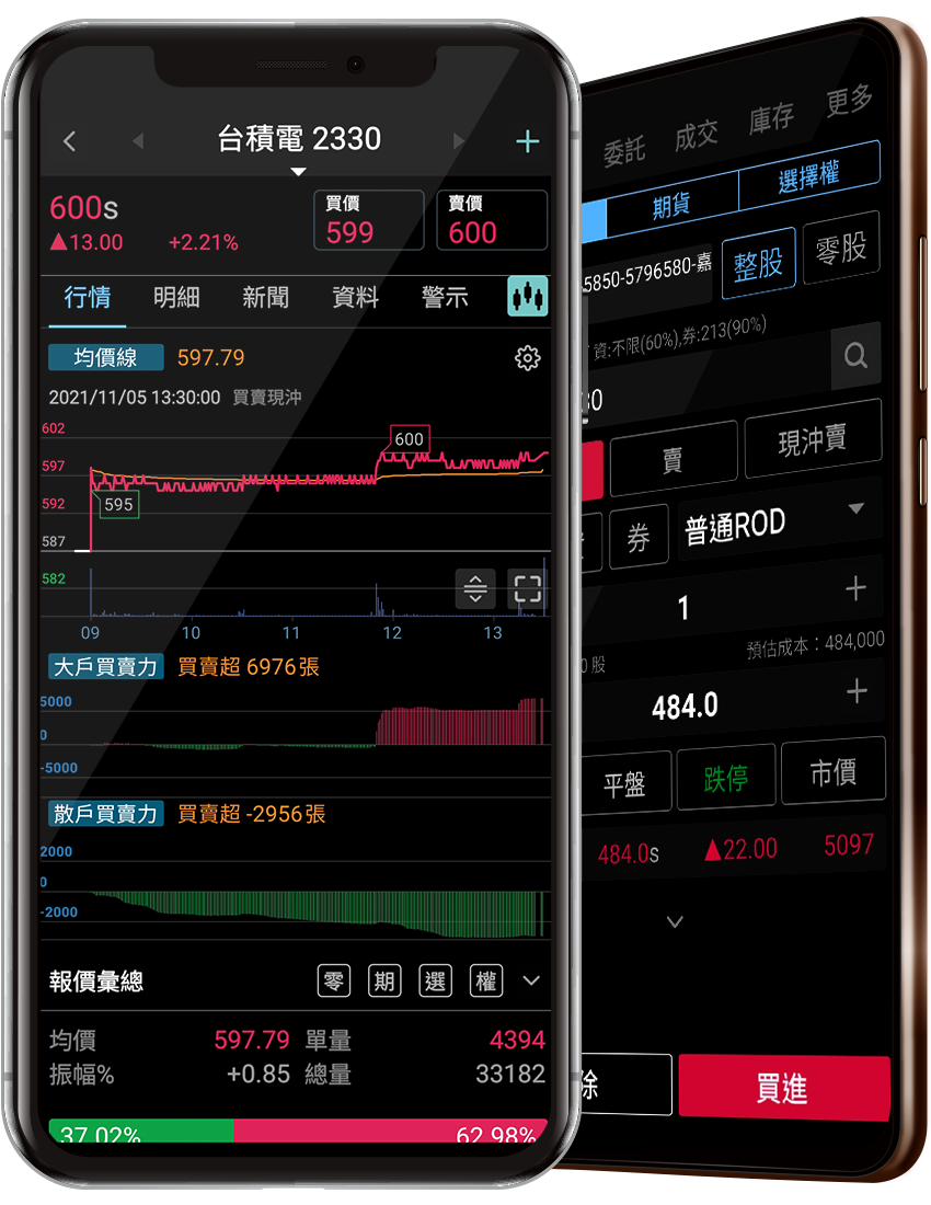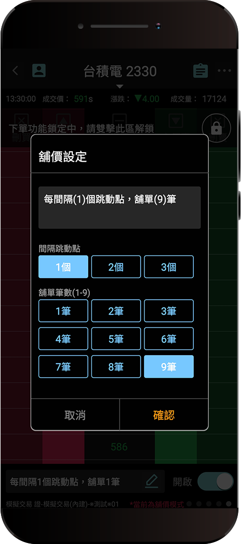 支援證券、期貨、選擇權,可同時委託多筆鋪價單。