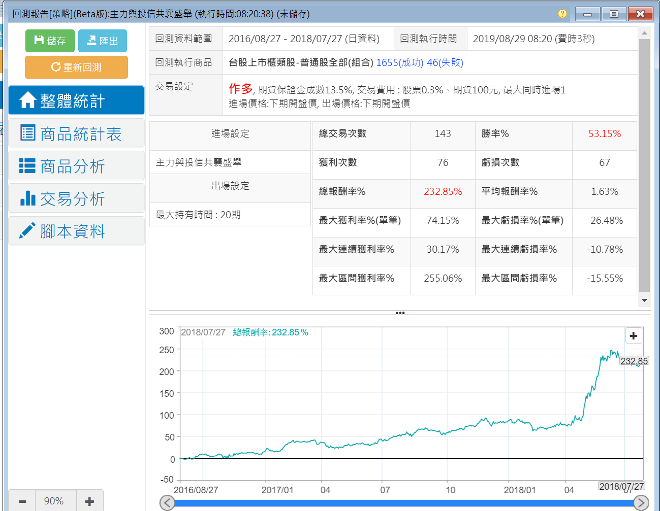 跟投信有關的交易策略有很多,有網友教了我一個,說是多頭市場非常好用,我回測了一下,數字不錯,細想其概念,頗有道理,不敢藏私,跟大家分享。