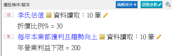 這樣就可以選出過去五年本業獲利穩定且呈上昇趨勢,然後估值又較低的公司。