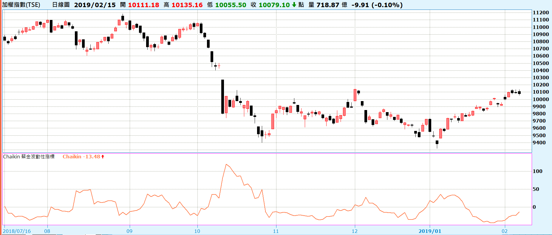 Chaikin Volatility 這個指標是在描述價格的波動程度。