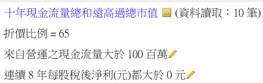 如果一家公司,過去十年來自營運的現金流量總和,遠比總市值還高,那代表這家公司正處於股價的谷底,這時候如果法人有很明顯的買超,那可能代表連法人都知道這是長線抄底的好時機