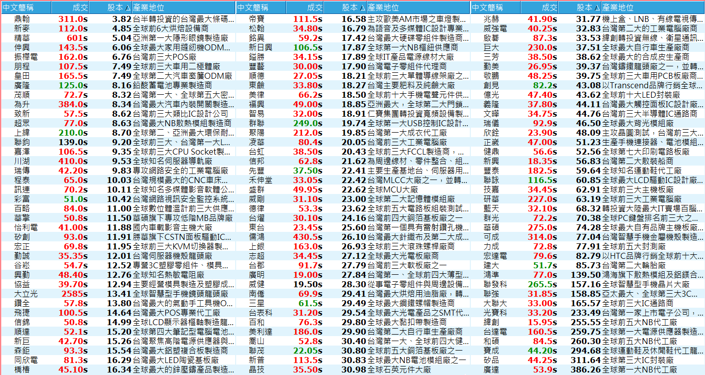 符合條件的公司,共有120檔,其中股本由小排到大如以下這張圖