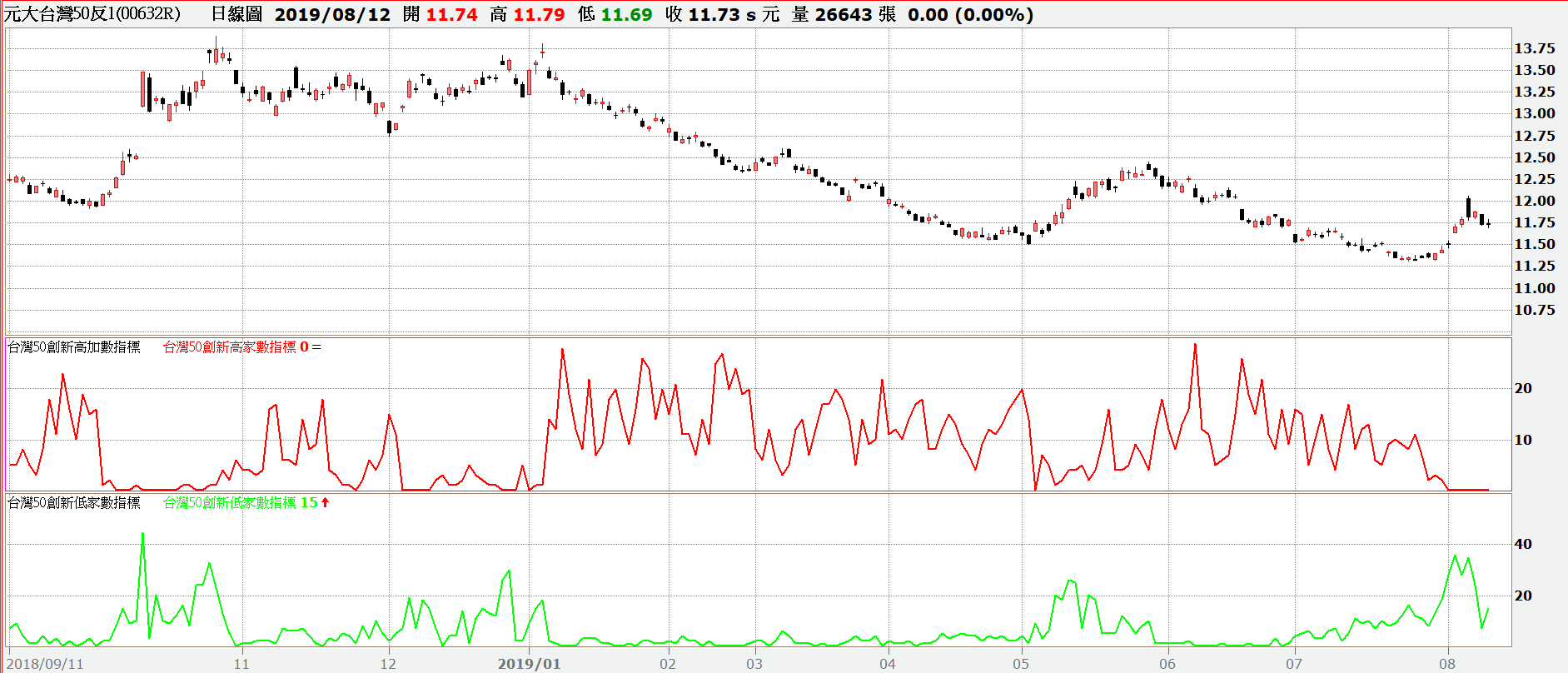 昨天跟大家介紹了台灣50的多空指標,有使用者問說在這樣的思維下,能否示範如何創造類似的指標,剛好觸發我寫0050多空指標的這位朋友,他原本就是專心在操作0050及00632R,所以原來就有一些私房的觀察指標,在取得他同意之後,今天來跟大家分享創新高與創新低指標。