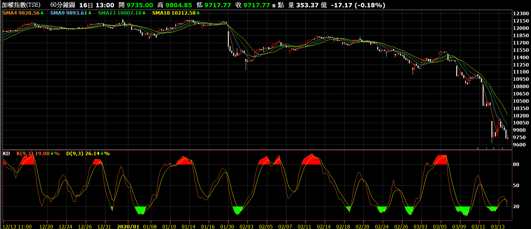 K值及D值如鐘擺般來回擺動,有著物極必返的概念,是震盪指標的代表