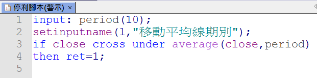 我用的是10日移動平均來停利,以下這個腳本的意思是只要股價跌破10日移動平均線就請電腦通知我