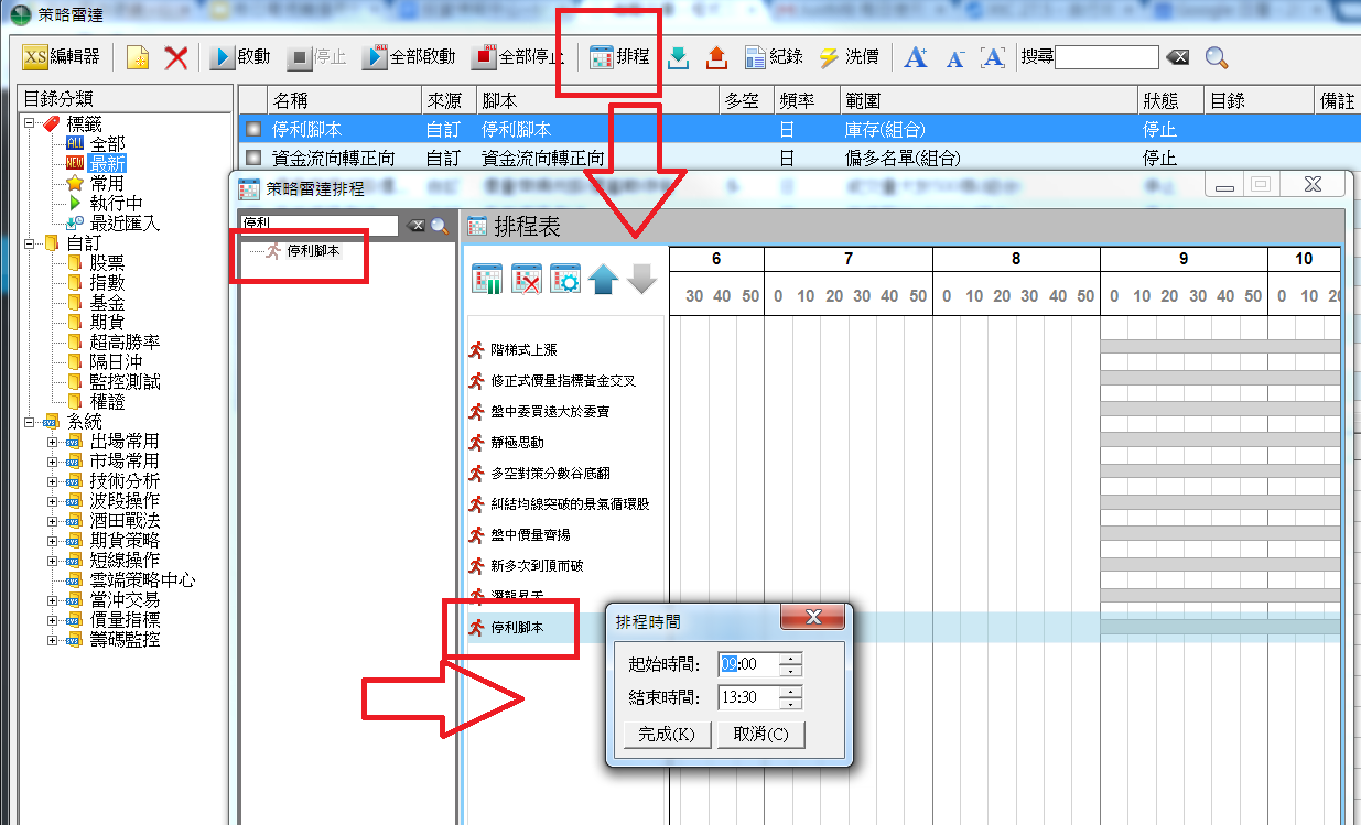 然後我把這個策略雷達排進排程中,每天開盤時間電腦就自動執行