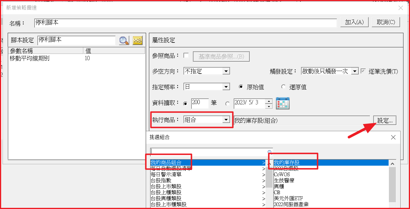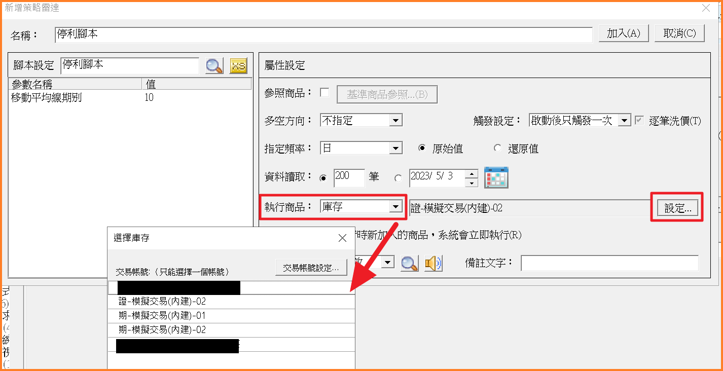 我把停利腳本設成一個策略雷達,執行商品有幾個方式可選擇: