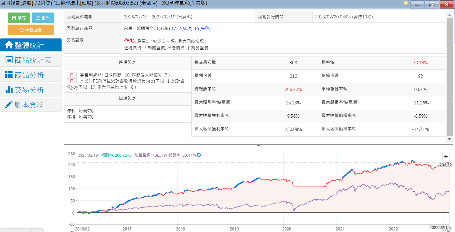 這個策略回測過去7年, 停損停利都設為7%,回測報告如下