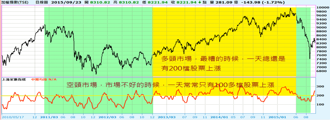 2.如果上漲的股票家數沒有200家,我們千萬不要覺得自己的股票是那少數的股票之一,這時候最好空手或是使用空頭操作策略。