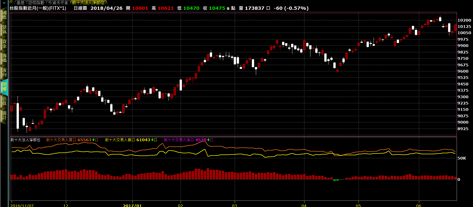 其中我個人最愛用的是前十大交易人未平倉淨部位,這個指標可以了解期指市場主要作手的多空態度,在長期觀察這個指標後,我歸納了幾個心得