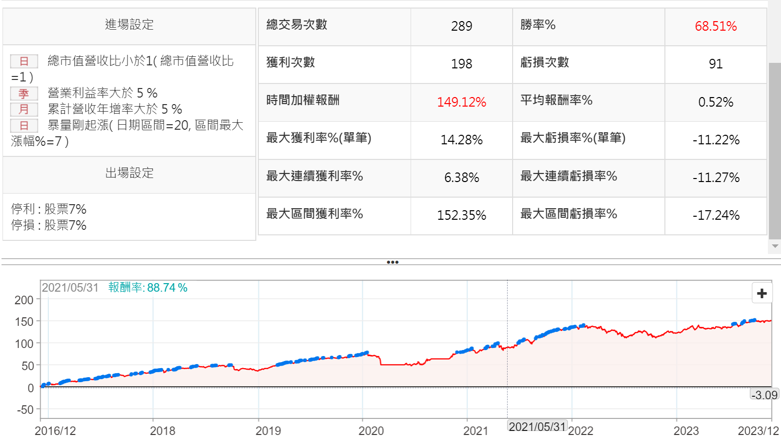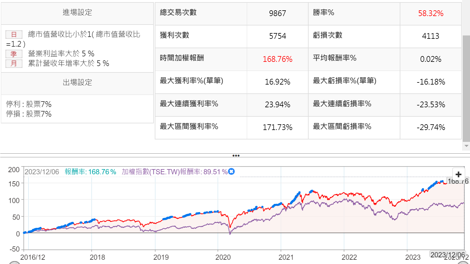 另外我把市值營收比的條件設的更嚴 ,必須<1。