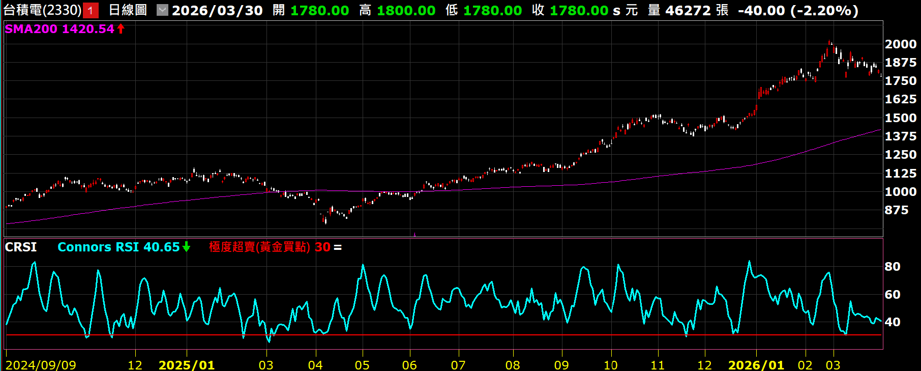 - 靈活停利: 均值回歸的獲利時間極短,通常不超過 5 天。當股價反彈,收盤價突破 5 日均線,或是 CRSI 回升至 70 以上,即刻獲利了結。