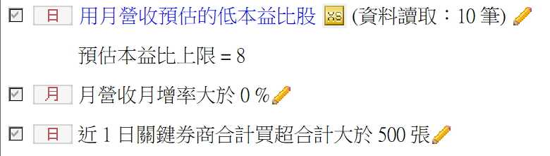 第三個條件是一個選股腳本,腳本的程式碼如下