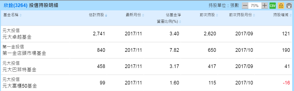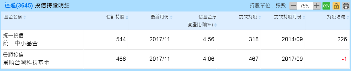 接下來就可以進到個股分析中,一檔一檔看看買這些特定股票的是那幾個基金,例如持有達邁跟欣銓的基金名稱如下