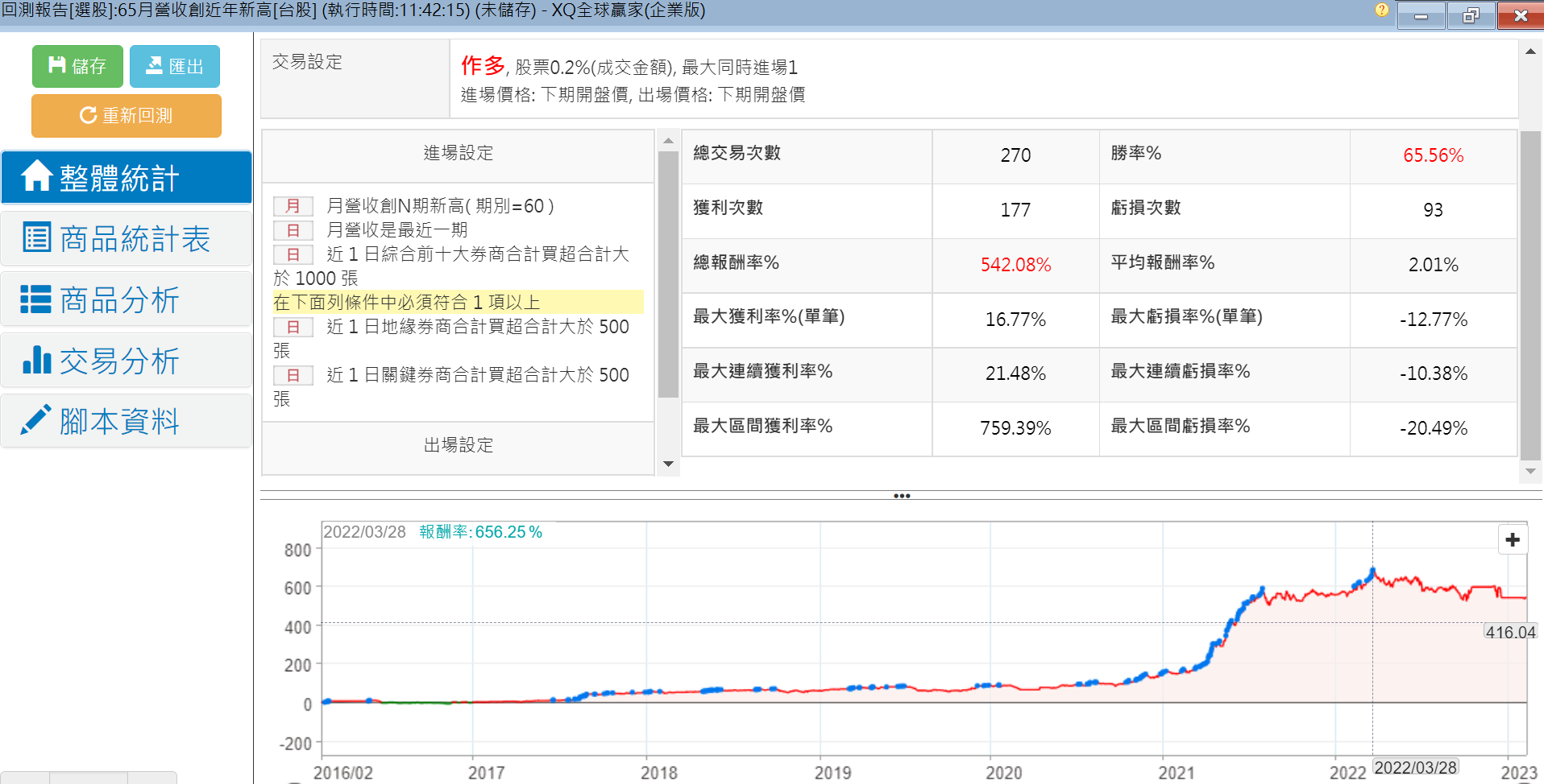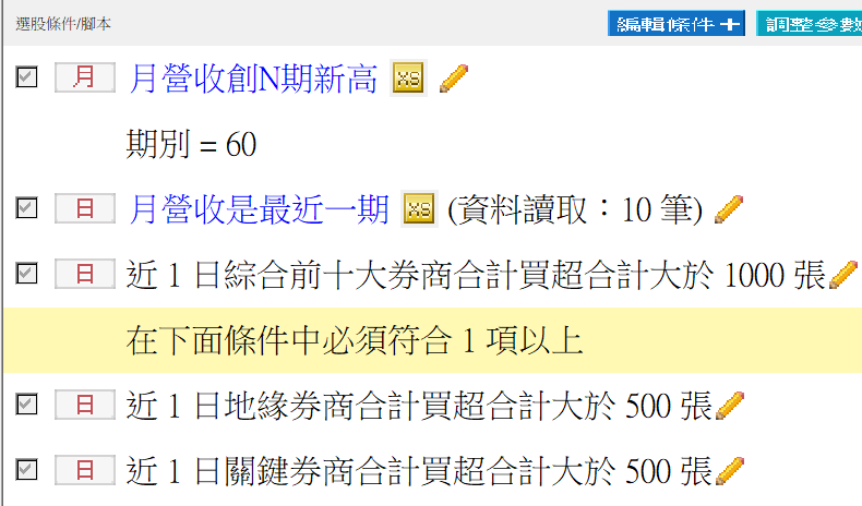 這個策略是去尋找月營收創五年來新高,且代操資金進場,大股東站在買方的個股,這是典型基本面與籌碼面同步的作多策略