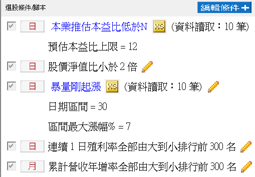 這種營收成長排在前1/5且低本益比,低PB,高殖利率的股票,當量能開始成長時,往往是不錯的波段進場時機。