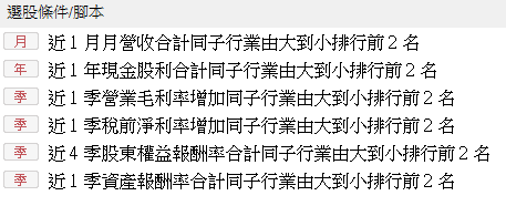 一,XS提供了同產業排行這樣的選股條件,讓user可以透過這些條件,挑出屬於特定行業特定條件排名最前或最後的股票。